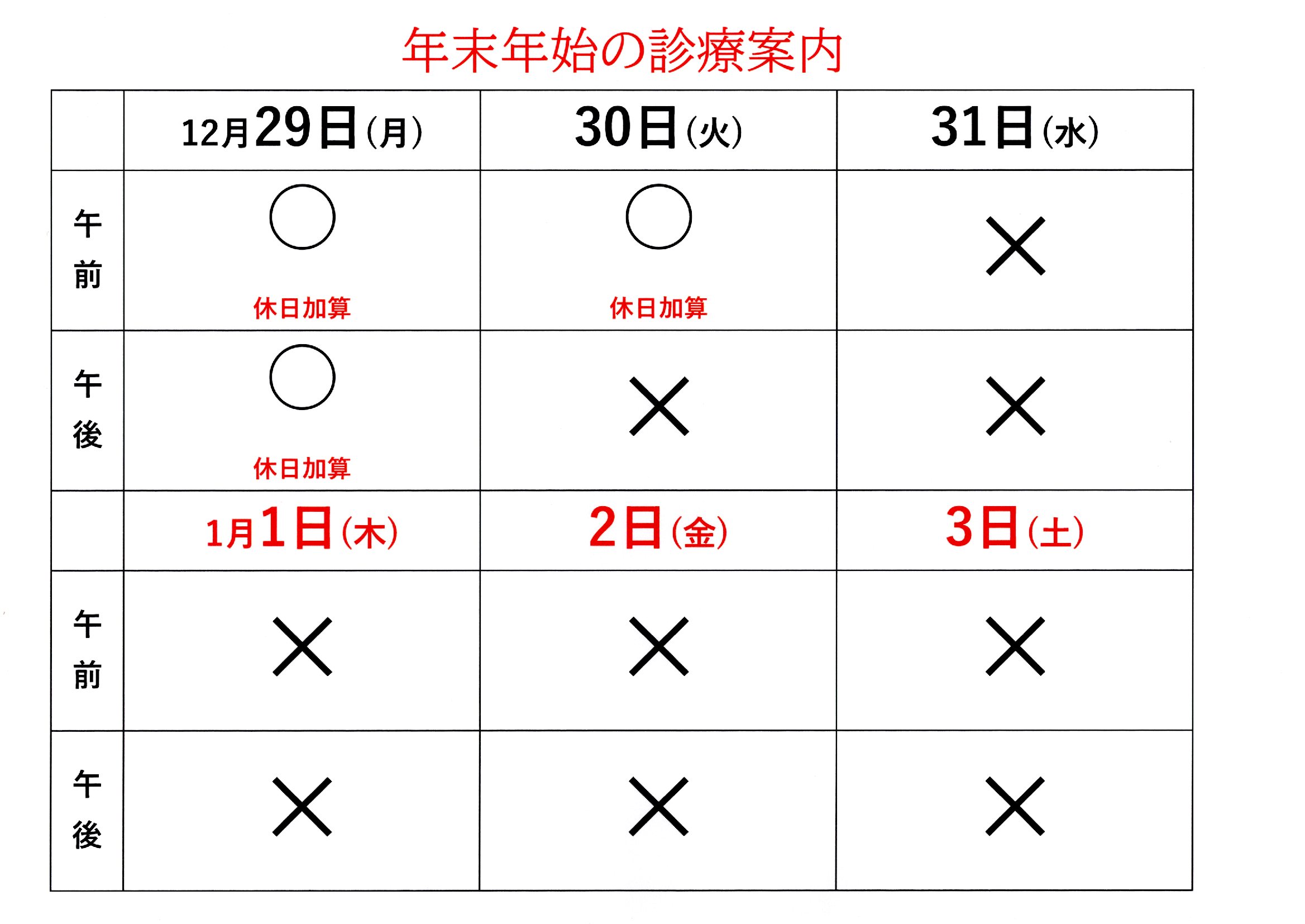 12月30日(火)の眞田医師の診察は休診とさせていただきます。